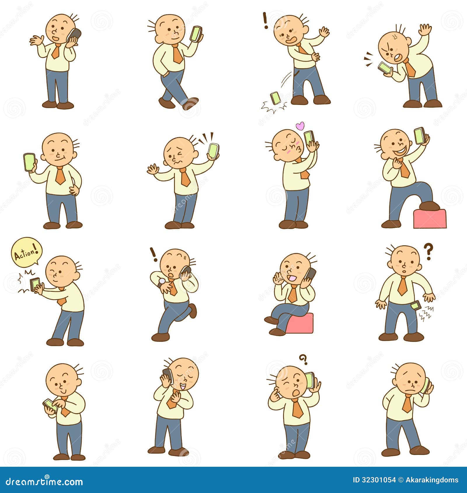 Set Of Funny Cartoon Man And Mobile Phone Stock Vector Illustration Of Mobile Presentation 32301054